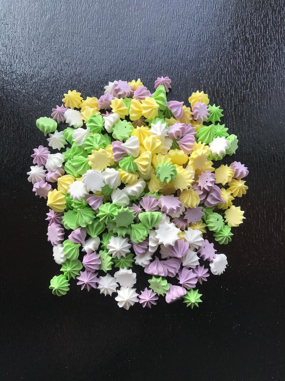 Мини- безе - легкий, технологичный в использовании декор, можно легко применить как в масштабах производства, так и в домашних условиях для декорирования тортов, пирожных, десертов, капкейков; легко крепится на любую поверхность кондитерского изделия, представлен широкой линейкой форм, оттенков и размеров. Размер мини-безе d10-15 мм.