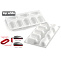 Набор состоит из силиконовой формы из 8 ячеек размером 82х43 мм, высотой 32 мм, объемом 8х80 мл, общий объем 640 мл и двойной вырубки из пластика.