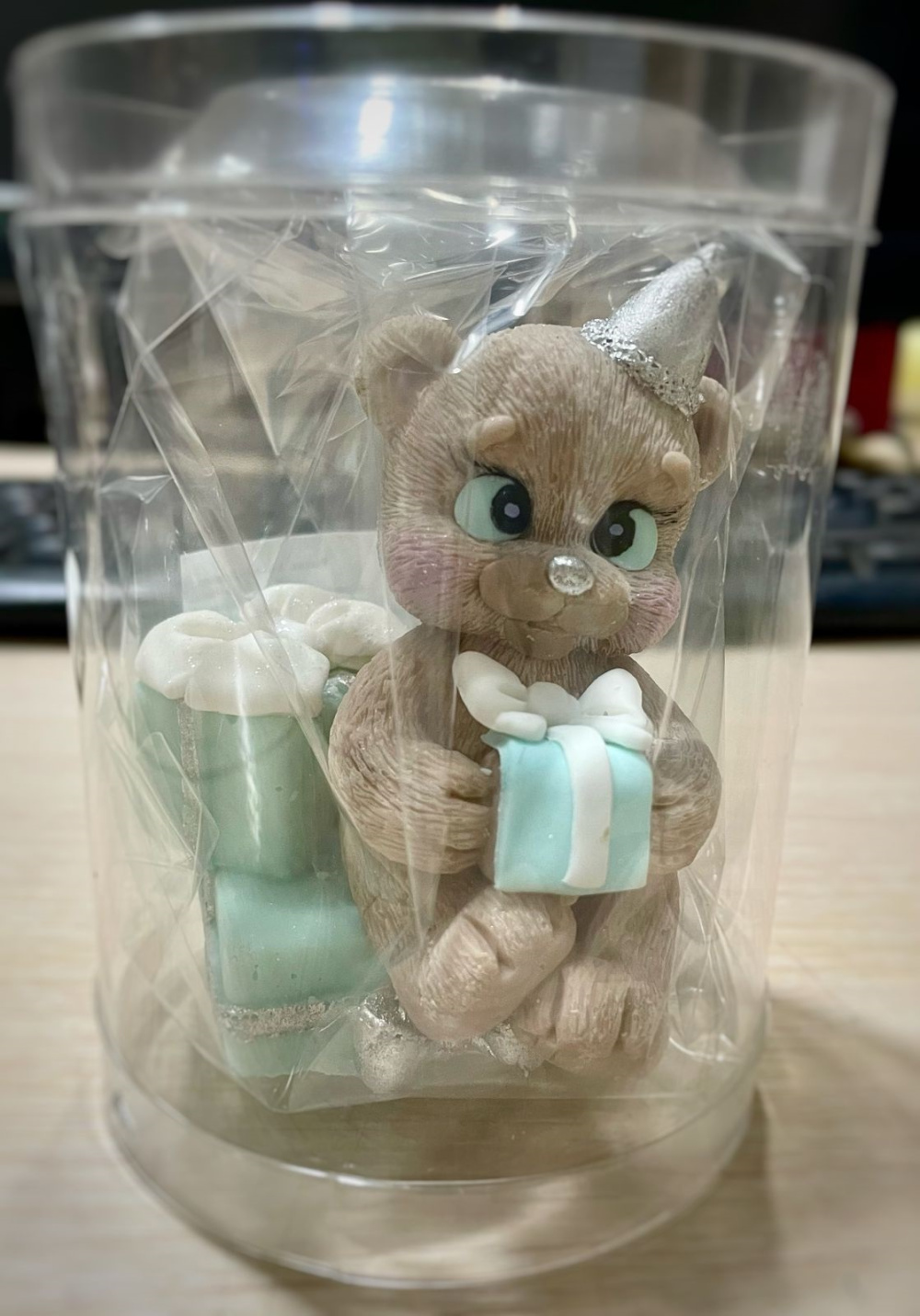 Фигурка из шоколадной глазури "Мишка с подарком "