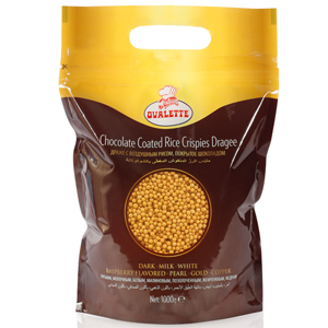 Хрустящие сферы, покрытые белым шоколадом, розового цвета. Вкус и аромат белого шоколада и малины. Диаметр сфер ~3-6 мм.