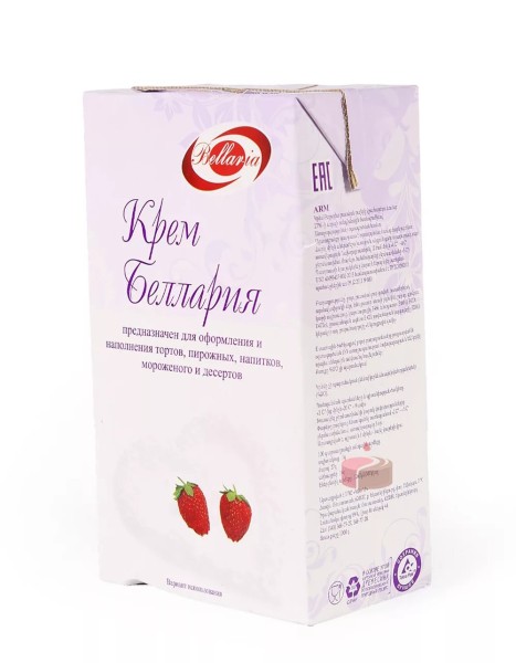 Белария - это растительные сливки, которые представляют собой жидкий полуфабрикат белого цвета, основанные на растительных жирах и молочной сыворотке для приготовления взбитых сливок в кулинарии. При взбивании увеличивается более чем в 4 раза в объеме - взбитые сливки имеют пышную структуру, великолепно поддаются обработке, имеют высокую устойчивость, обеспечивают получение четкого рисунка для декорирования, сохраняют стабильность длительное время.Растительные сливки Белария имеют следующие характеристики: